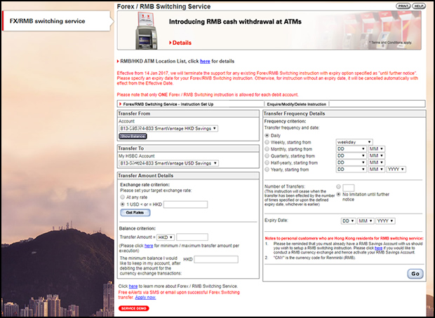 両替取引の条件を指定し、条件が成立した場合に両替を実行するサービスです。