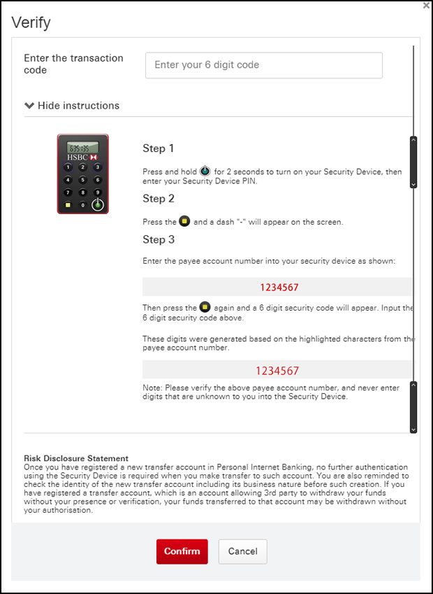 New payeeで未登録口座などに送金をする際、決定時にトランザクションコードの入力を求められます。
